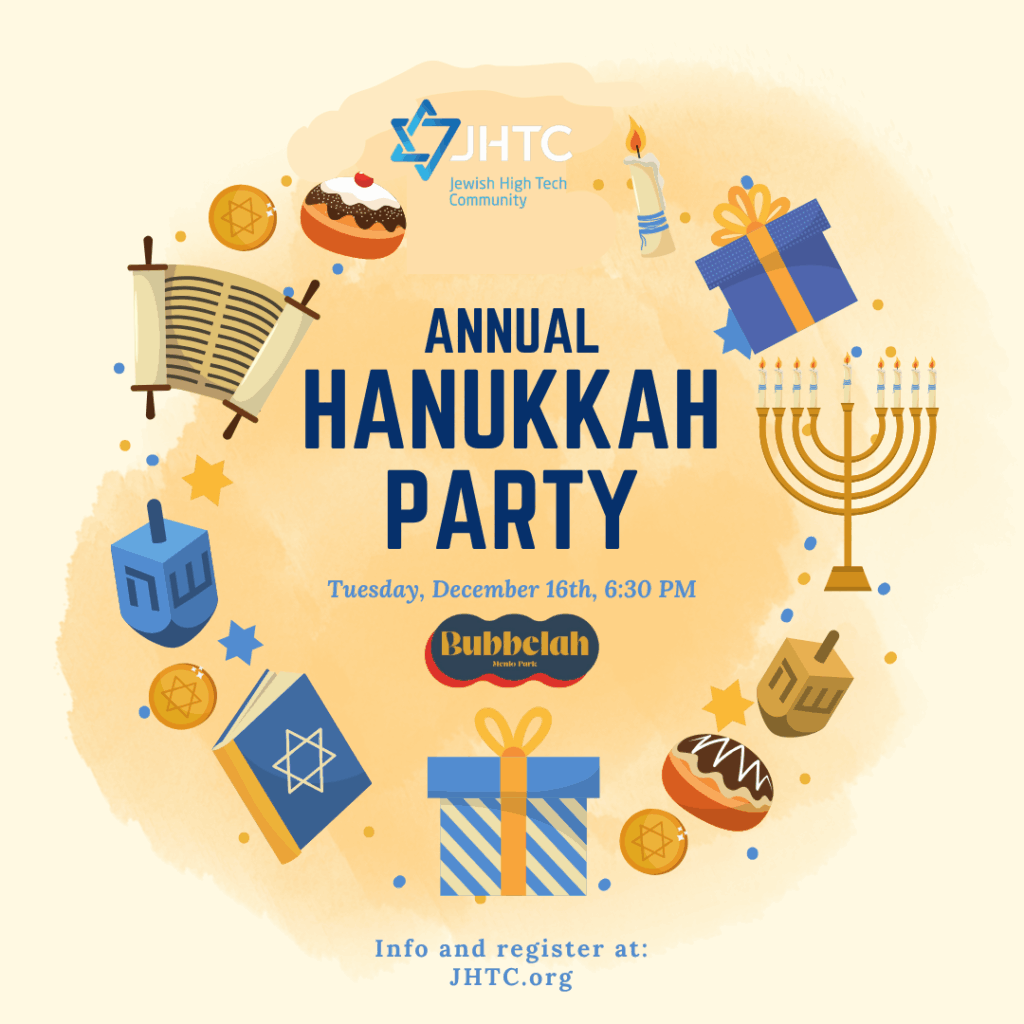 The Jewish High Tech Community, JHTC, hosts events with members from throughout the San Francisco Bay Area, with a focus on local events in Silicon Valley and locations in Mountain View and Palo Alto, CA. As always, members, guests and first-time attendees are welcome.